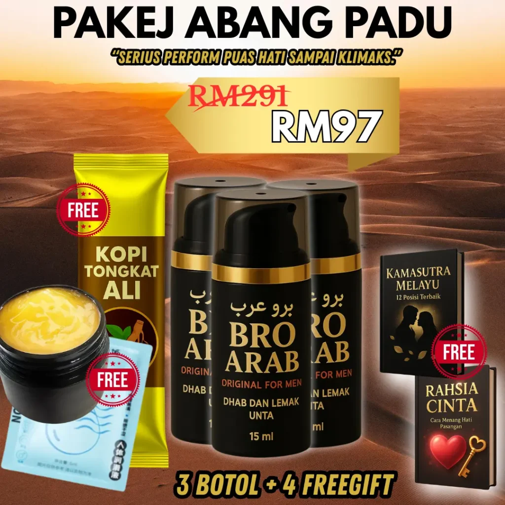 Jom ORDER SEKARANG, ada promosi dengan hanya RM57 abang akan dapat 1 unit MINYAK BRO ARAB beserta FREEGIFT MENARIK. Memang sangat BERBALOI!