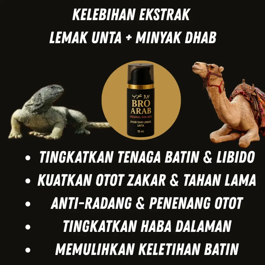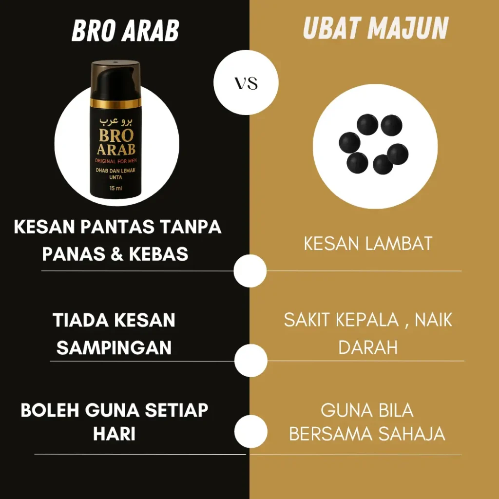 BRO ARAB ni adalah 100% bahan semula jadi dan dijamin selamat digunakan tanpa sebarang kesan sampingan. Dan hanya untuk kegunaan luar sahaja.Tidak perlu telan.